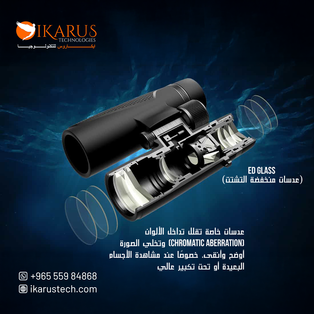 زجاج ED منخفض التشتت يقلل من الانحراف اللوني (Color Fringing)، ويمنح صورة أوضح وأكثر إشراقًا مقارنة بالمناظير العادية.